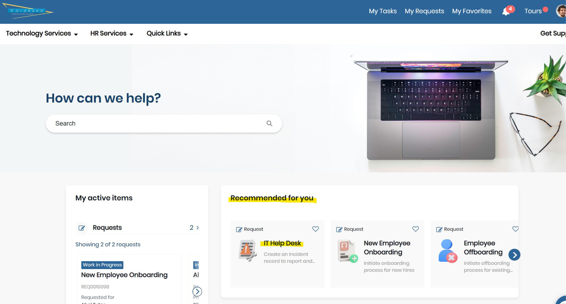 Click on “IT Help Desk” under “Recommended for you” section